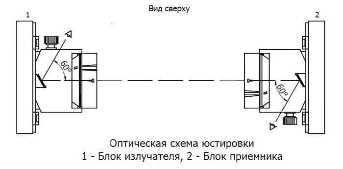 - Оптический излучатель посылает сигнал на приемник, расположенный на противоположной стене помещения.