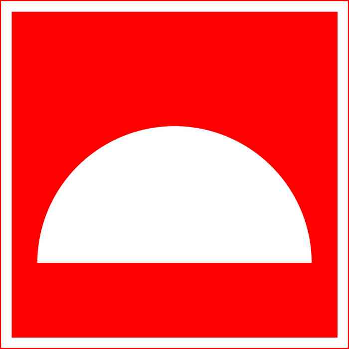 Обозначение щита на схемах используется знак «пожарный инвентарь» – на красном фоне белые: