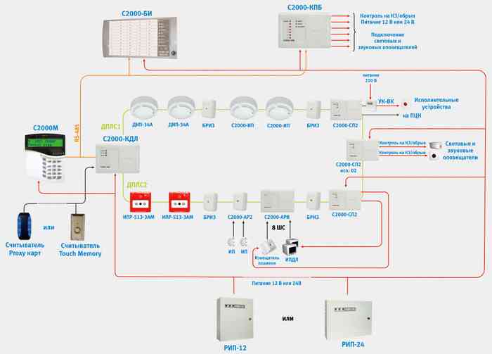 Выбор сечения кабеля, максимальная длина шлейфа ПС и многие другие аспекты рассчитываются после выбора схемы подключения датчиков. Существует несколько основных способов выполнения этой задачи:
