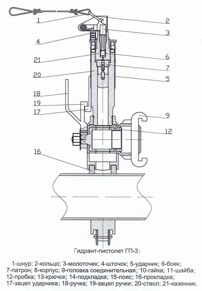 Принцип работы с описанием внутреннего устройства пожарного гидранта: