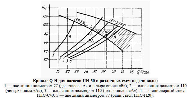 Потребуется увязать ПС шлангов с возможностями помп. Есть специальные графики, например под агрегаты ПН-30К: