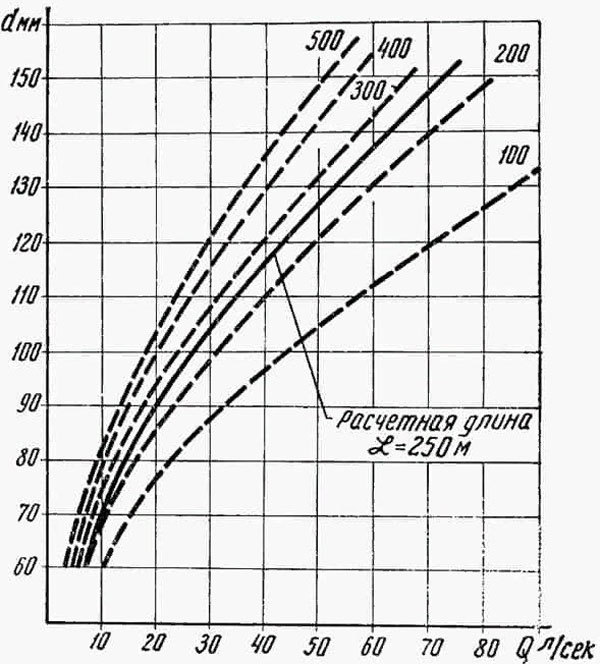 Пропускной способности на 30 л/с для 250 м подойдет диаметр 104 мм; 60 л/с – 138 мм. Поэтому уместно вооружать силы пожаротушения рукавами Ø 11 см и 15 см. Их возможности будут несколько выше, чем расчетные или же увеличится длина магистральных линий до 340 – 360 м.