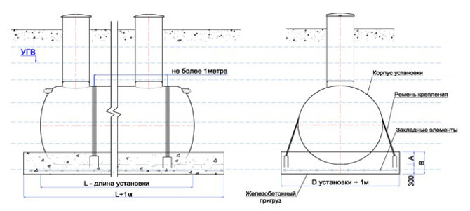 - стальной противопожарный резервуар ставят на ножки, крепят тросами («якорение»);